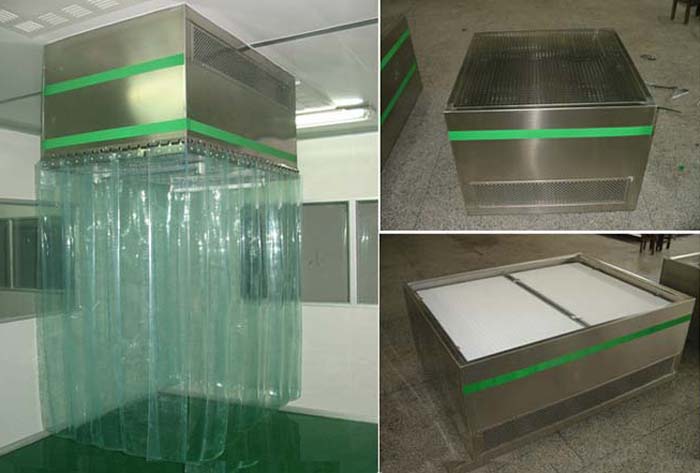 潔凈層流罩可以單個使用,也可多個連接組成帶狀潔凈區域。層流罩是將空氣以一定地風速通過高效過濾器后,形成均流層,使潔凈空氣呈垂直單向流,從而保證了工作區內達到工藝要求的潔凈度。